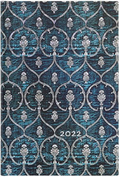 Diář 2022. 7666-7. Paperblanks Blue Velvet 2022 12-Month Hardcover Planner, Mini – Horizontal Week-at-a-Time